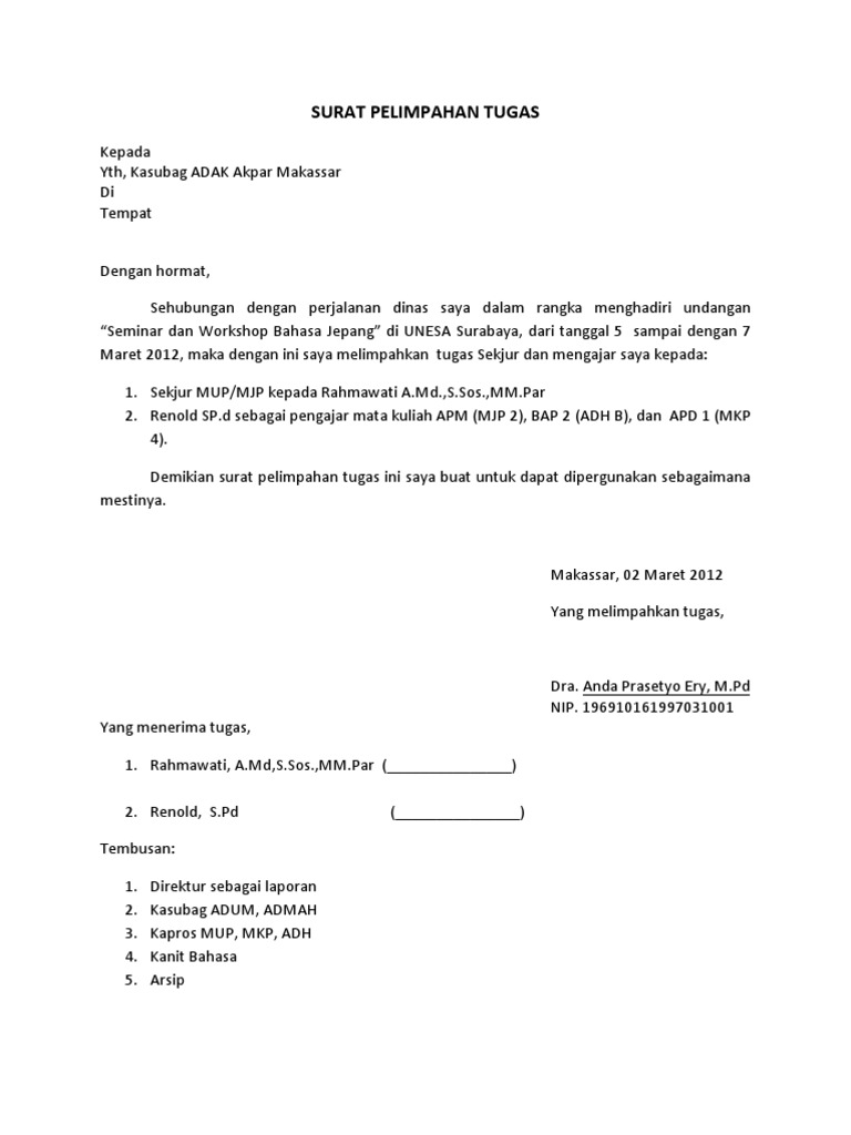 Documents similar to surat an serahan tugas emi. Pada zaman modern, ternyata tidak mengurangi eksistensi surat. Membuat surat keterangan sehat, diperlukan untuk mendaftar cpns atau ingin melamar kerja. Kasus dugaan pemalsuan surat hasil. Penyerahan surat tugas kepada ifan itu seakan menjadi penanda dimulainya kemeriahan pilkada jember setelah tahapan ditunda karena pandemi corona.